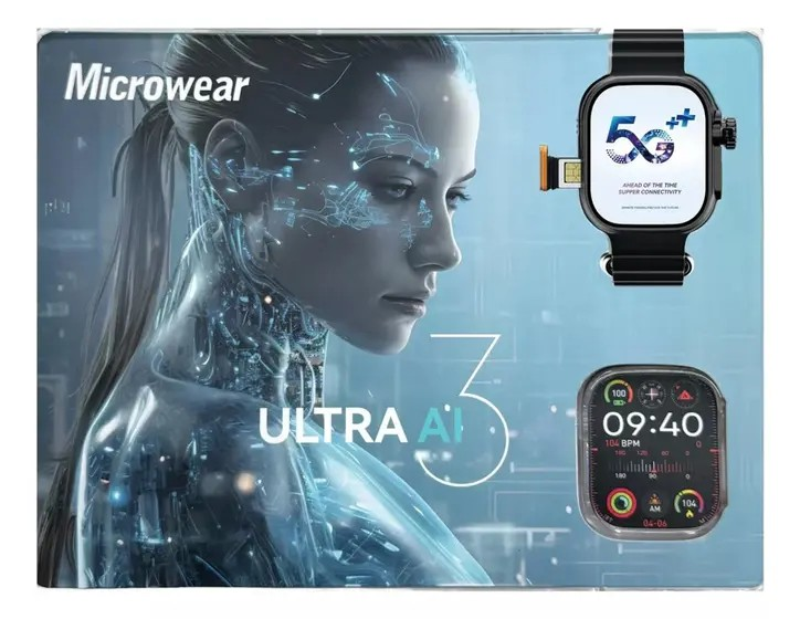 - O Microwear Ultra 3 AI 5G é um smartwatch de última geração que combina design elegante, tecnologia avançada e funcionalidades inteligentes. Equipado com conectividade 5G e tecnologia de chip, este relógio é perfeito para quem busca desempenho superior e uma experiência conectada em todos os momentos. Ideal para monitorar a saúde, realizar chamadas, acessar a internet e muito mais, o Ultra 3 AI 5G é o companheiro perfeito para um estilo de vida moderno e ativo.